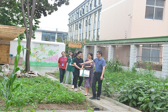 一行参观了学校的劳动教育实践基地和课程实践基地,详细介绍了塘桥地区与学校发展的历史变迁,展示了学校在学生素质教育培养上的努力和成果。